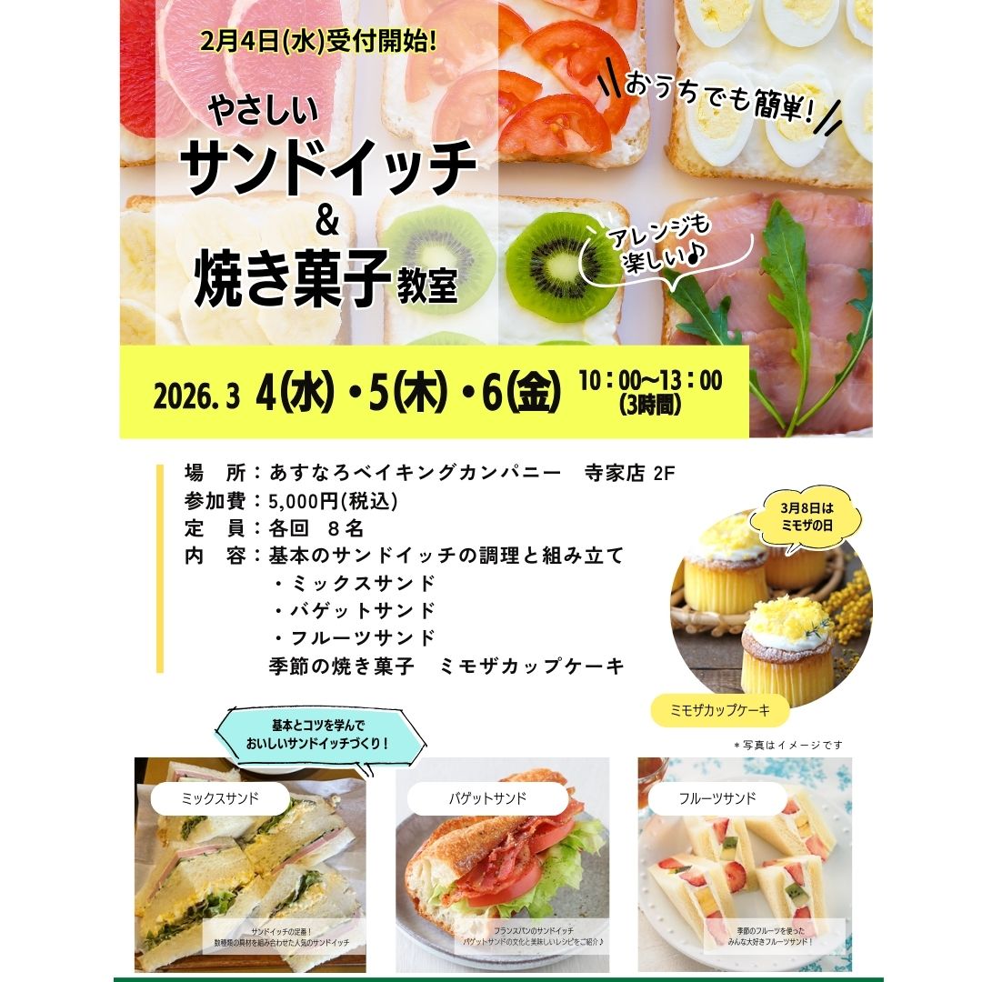 3月のサンドイッチ&焼き菓子教室、